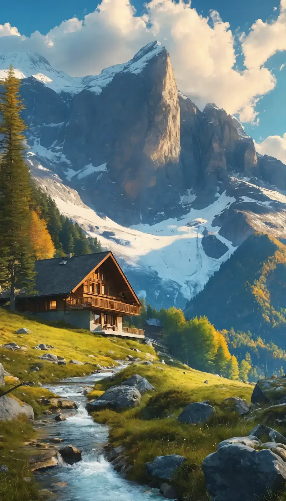 The "Magnificent mountain landscape with a chalet" offers a perfect blend of natural beauty and human touch. With its tranquil setting, vibrant details, and serene atmosphere, this prompt is ideal for a wide range of creative projects. Unlock your imagination and explore the limitless possibilities this scene provides.