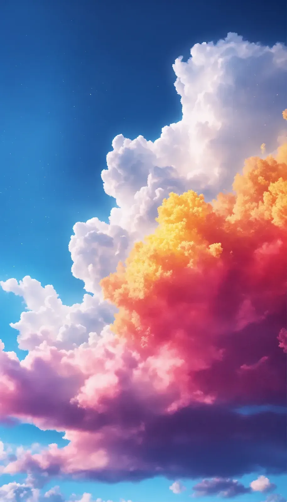 Prompt: "White cloud on blue sky, vibrant, Colorful gradient splash, hd, 4k, high-quality, highly detailed, photorealistic, RAW, high quality, dynamic lighting, sharp focus, ultra realistic, masterpiece"